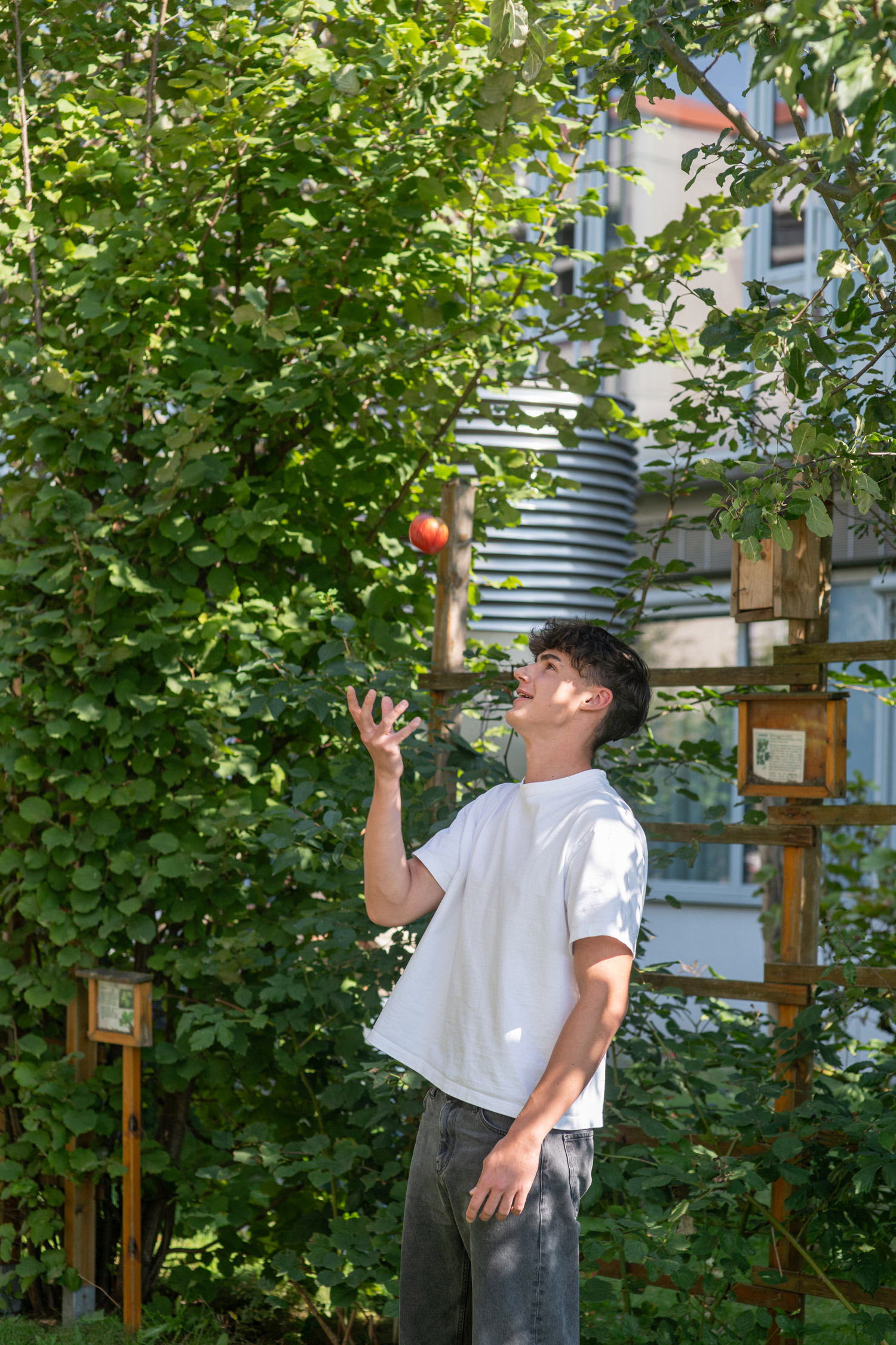 In unserem Schulgarten kümmern wir uns um die selbst angelegte Kräuterspirale und pflegen hauseigene Weinstöcke, Obstbäume und Heckenpflanzen.